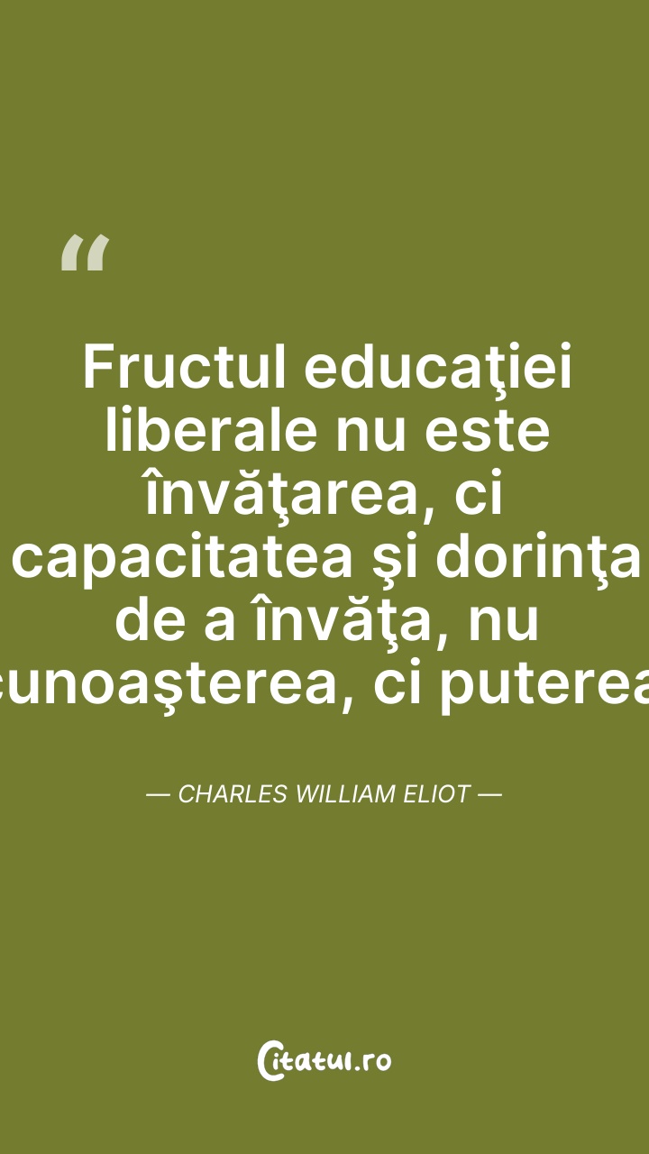 Fructul educaţiei liberale nu este învăţarea, ... Citește tot citatul >