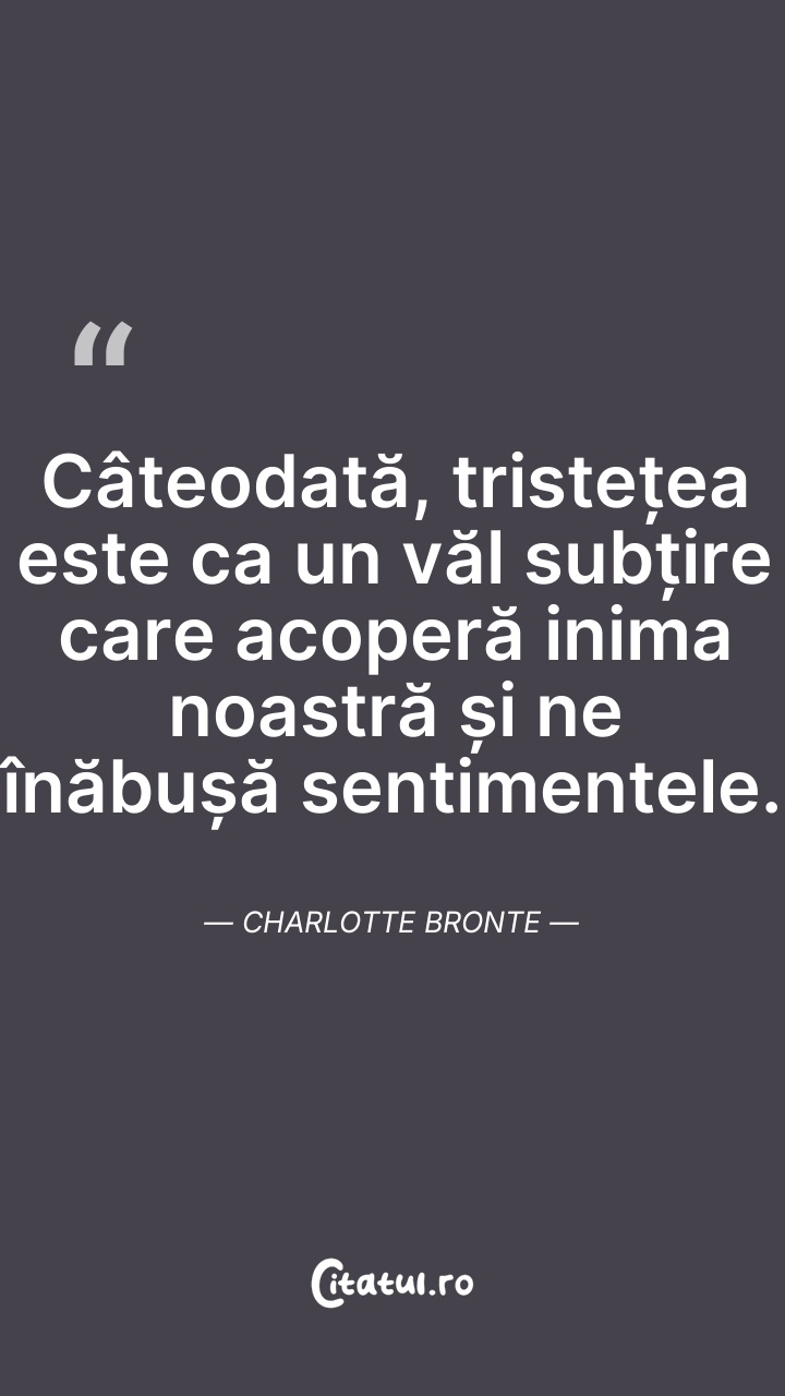 Charlotte Brontë a fost o romancieră și poetă engleză, sora mai mare a celorlalte două scriitoare: Emily Brontë și Anne Brontë. Charlotte Brontë, care obișnuia să folosească pseudonimul de Currer Bell, este cunoscută pentru cartea ei Jane Eyre, unul dintre cele mai celebre romane din literatura engleză și cea universală.
