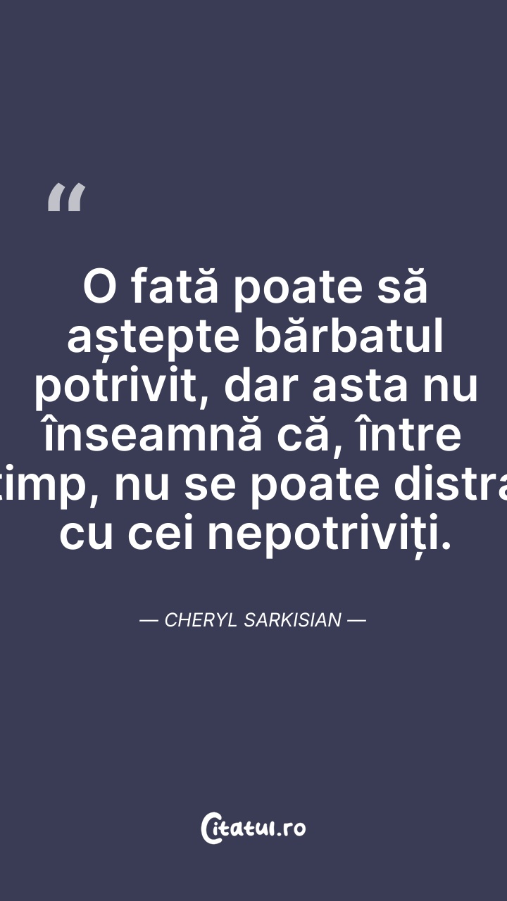 O fată poate să aștepte bărbatul potrivit, da ... Citește tot citatul >