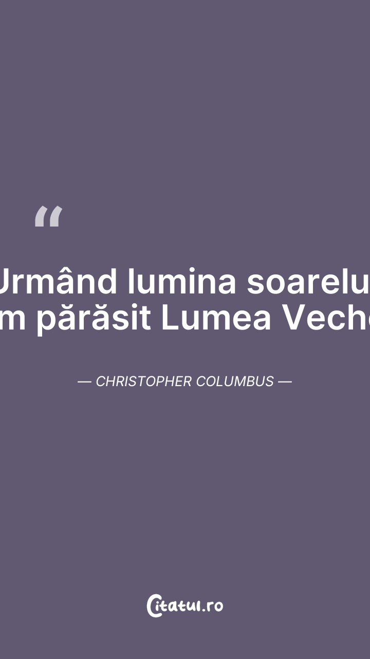 Urmând lumina soarelui, am părăsit Lumea Vech ... Citește tot citatul >