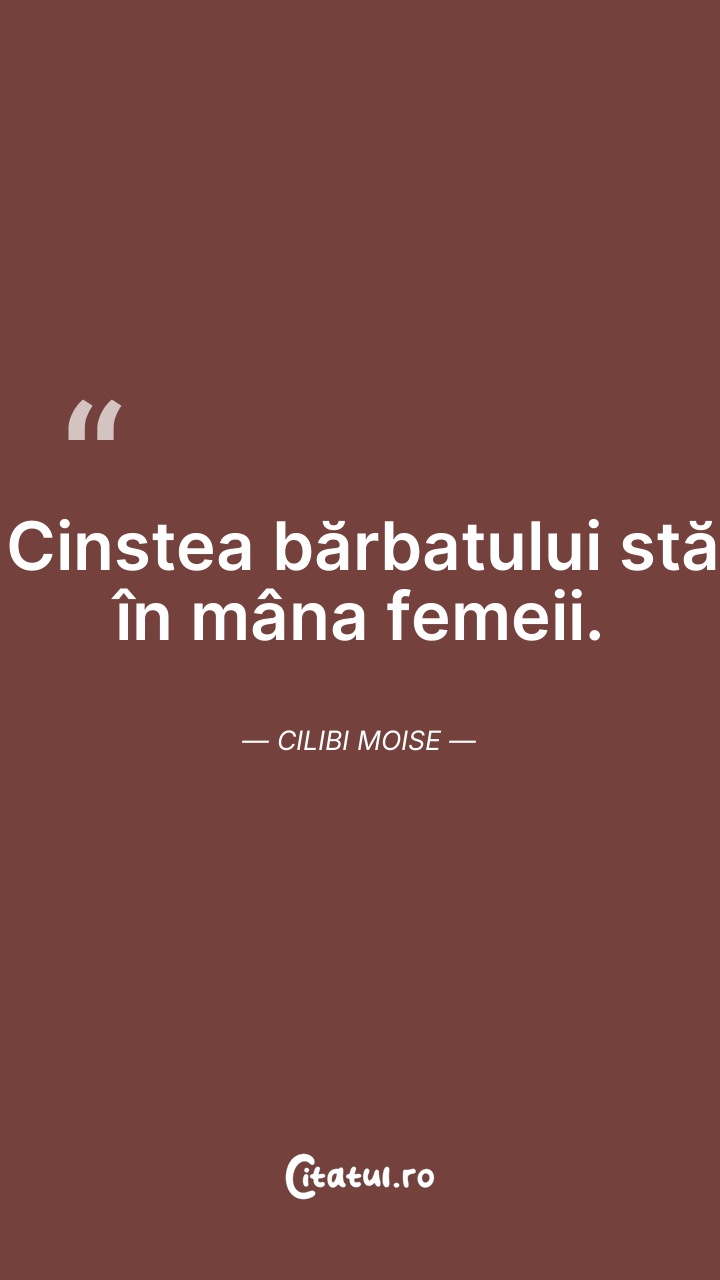Cinstea bărbatului stă în mâna femeii. Cilibi ... Citește tot citatul >