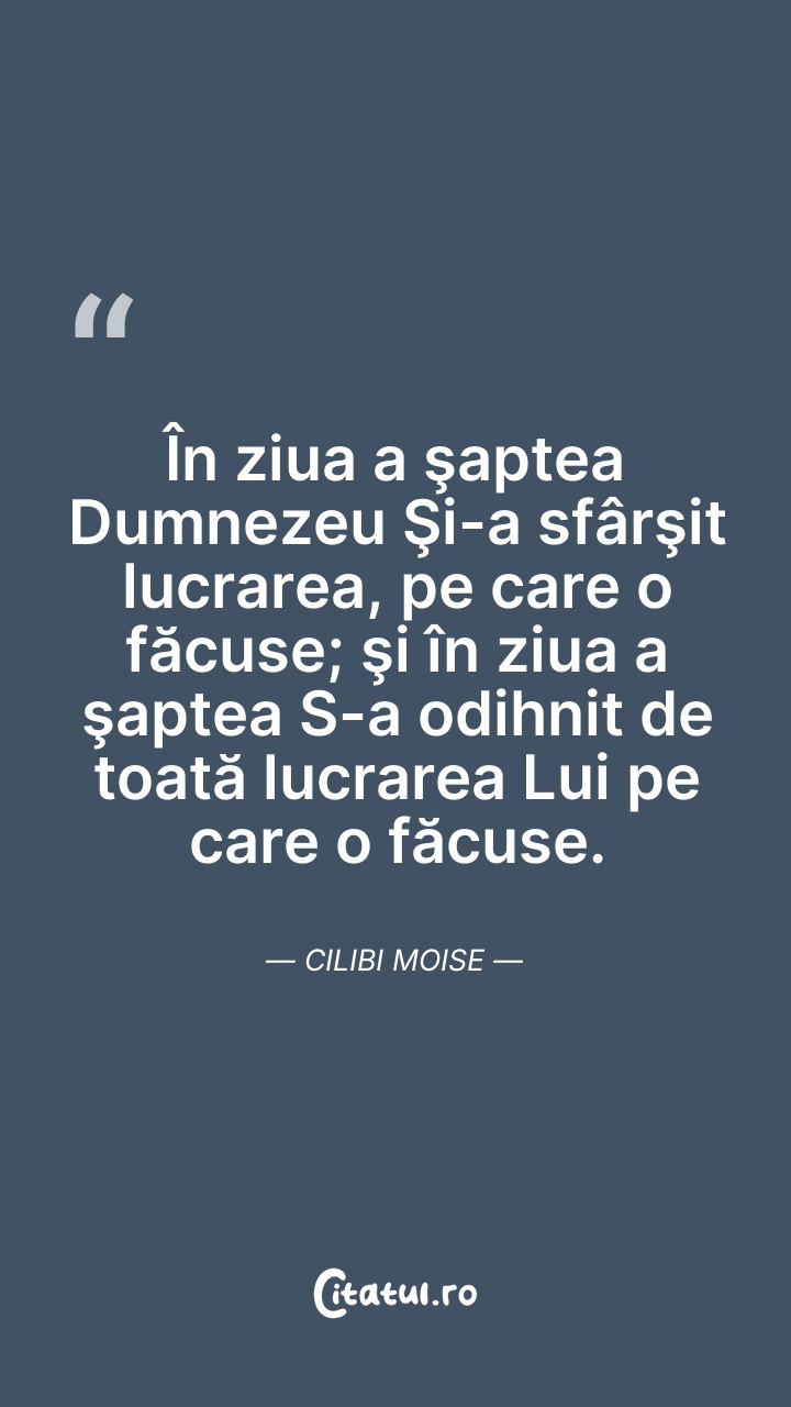 În ziua a şaptea Dumnezeu Şi-a sfârşit lucrar ... Citește tot citatul >