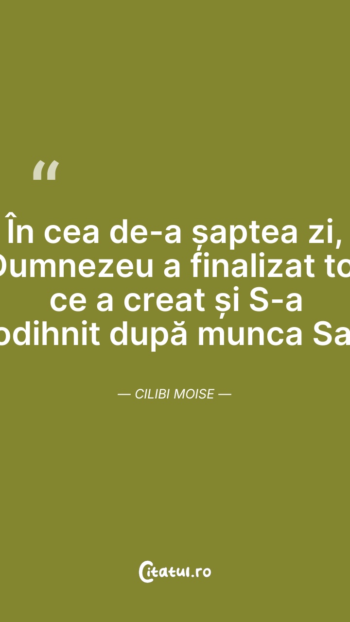 În cea de-a șaptea zi, Dumnezeu a finalizat t ... Citește tot citatul >