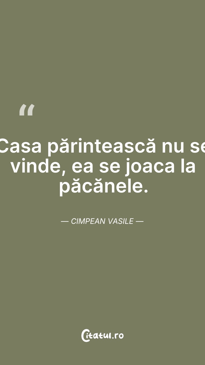 Casa părintească nu se vinde, ea se joaca la ... Citește tot citatul >