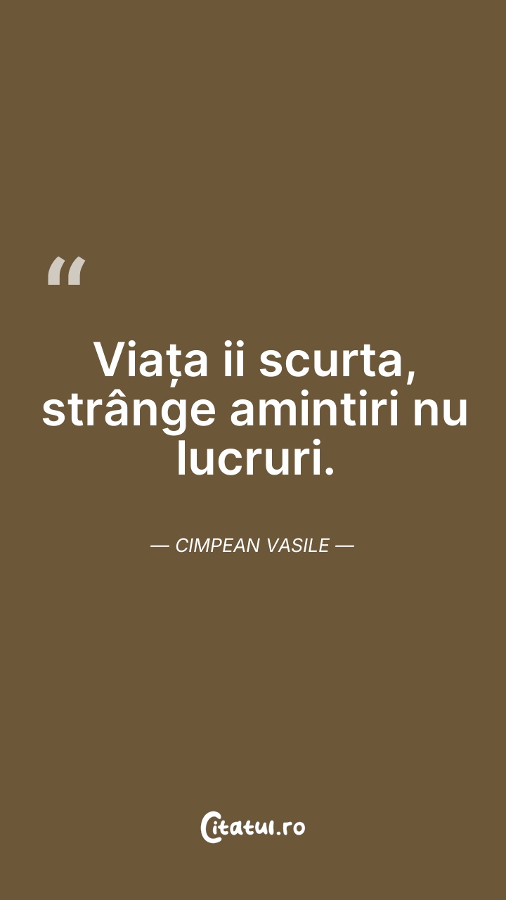 Viața ii scurta, strânge amintiri nu lucruri. ... Citește tot citatul >