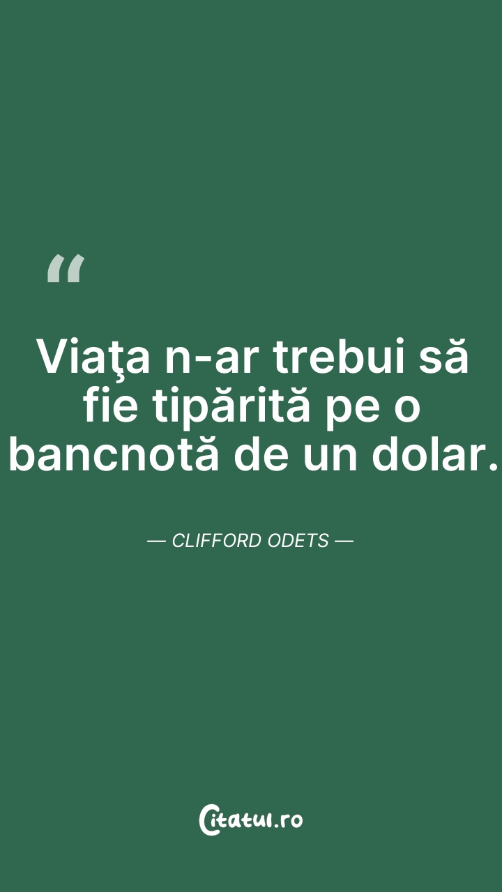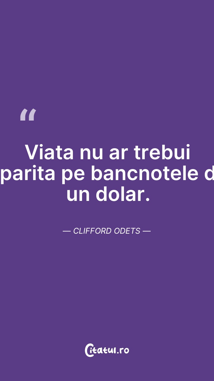 Viaţa n-ar trebui să fie tipărită pe o bancno ... Citește tot citatul >