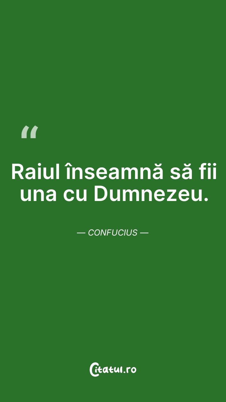 Raiul înseamnă să fii una cu Dumnezeu. Confuc ... Citește tot citatul >