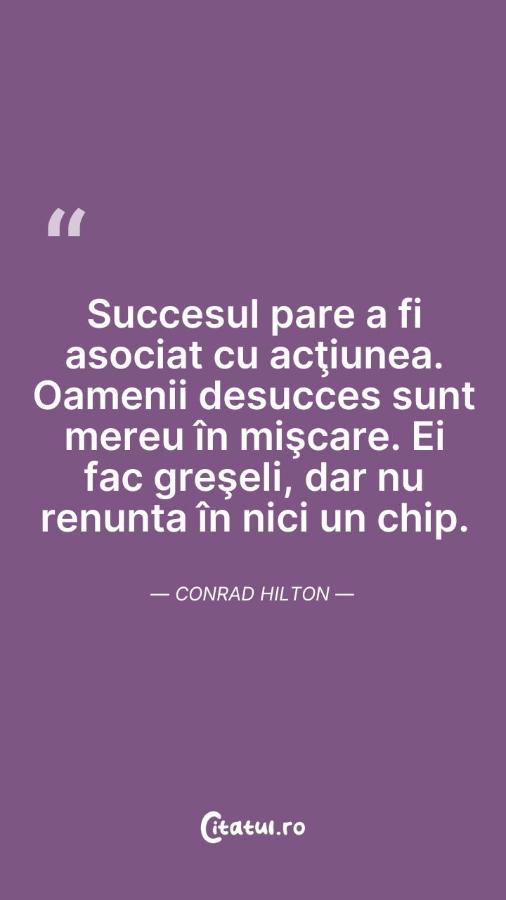 Succesul pare a fi asociat cu acţiunea. Oamen ... Citește tot citatul >