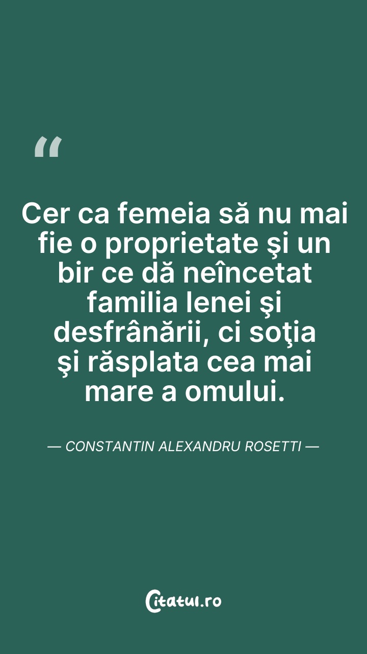 Cer ca femeia să nu mai fie o proprietate şi ... Citește tot citatul >