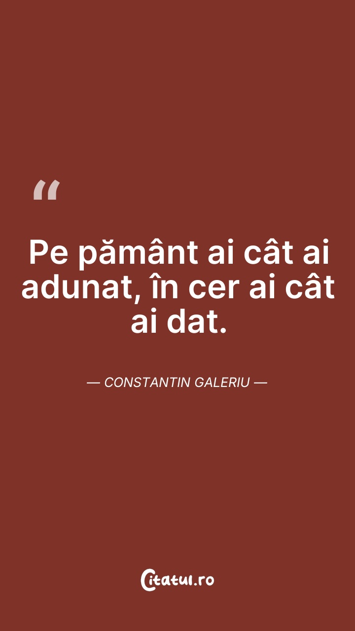Pe pământ ai cât ai adunat, în cer ai cât ai ... Citește tot citatul >