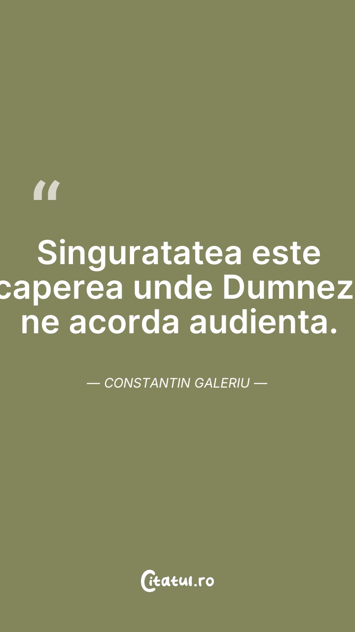 Singuratatea este incaperea unde Dumnezeu ne ... Citește tot citatul >