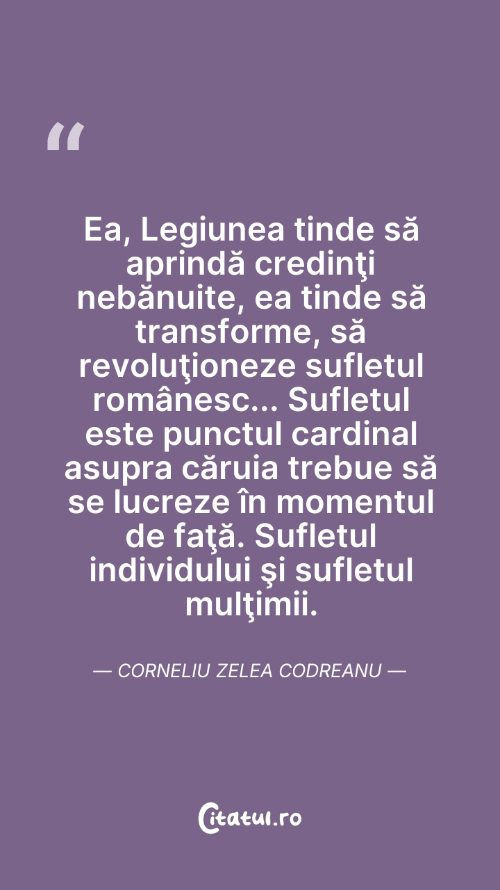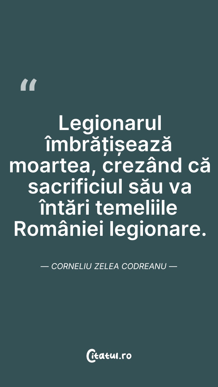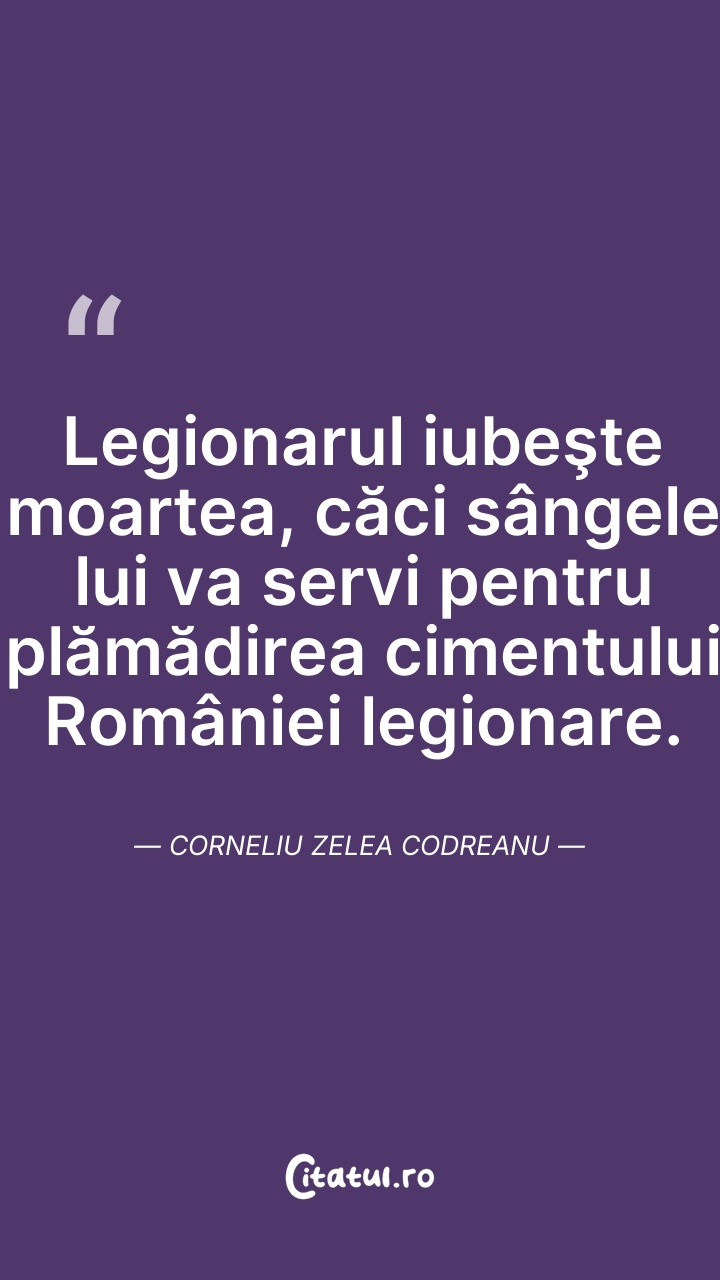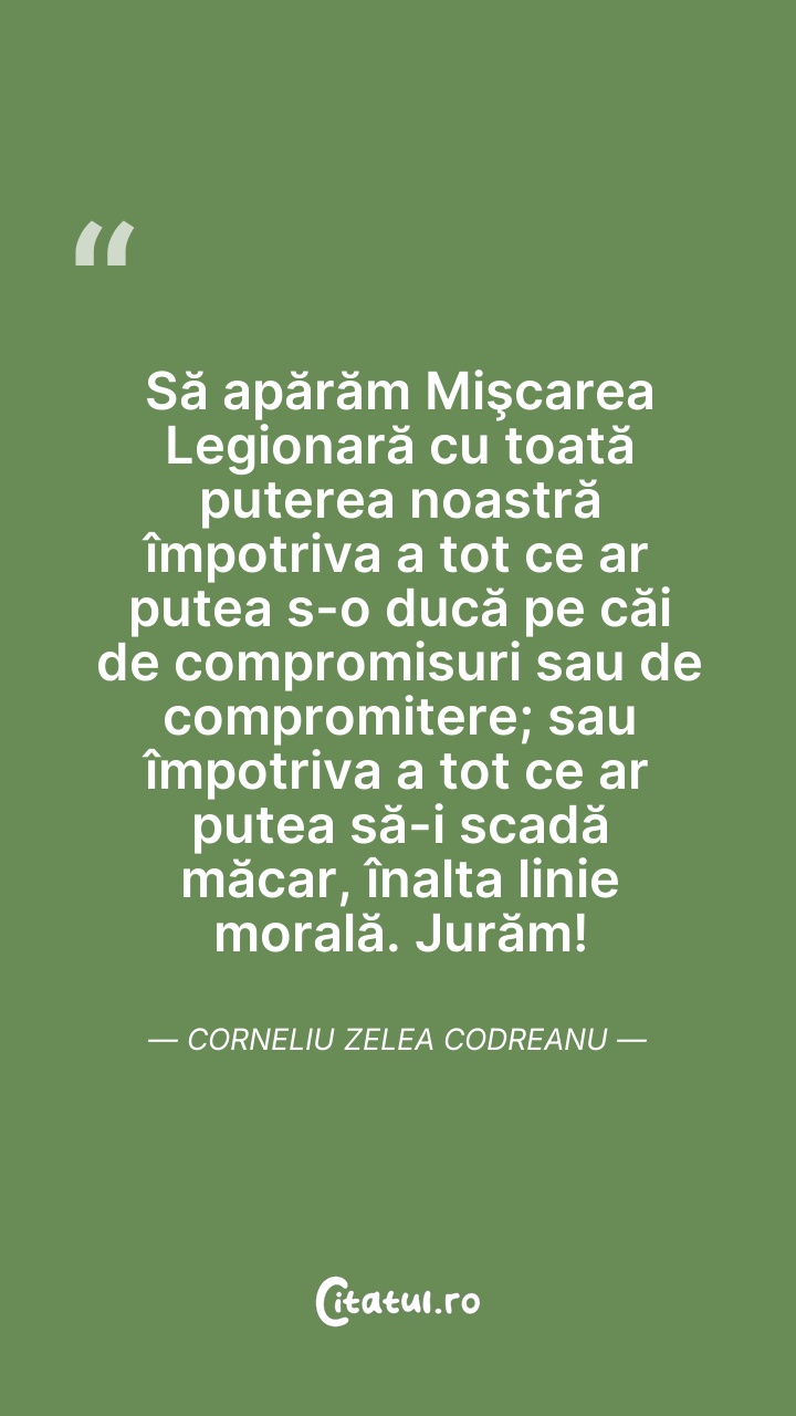 Corneliu Zelea Codreanu a fost un politician român de extremă-dreaptă, fascist, anticomunist și antisemit, fondatorul și liderul organizației de extremă-dreaptă Mișcarea Legionară cunoscută și sub denumirile de Legiunea Arhanghelul Mihail și Garda de Fier, o organizație ultranaționalistă și violent antisemită activă în perioada interbelică, care a reprezentat principala varietate a fascismului local și care s-a remarcat prin mesajul său mistic de inspirație creștin-ortodoxă română. Garda de Fier a câștigat proeminență pe scena politică românească, recurgând adesea la terorism. Legionarii s-au referit la Codreanu drept Căpitanul, iar el a deținut autoritate absolută asupra organizației până la moartea sa.