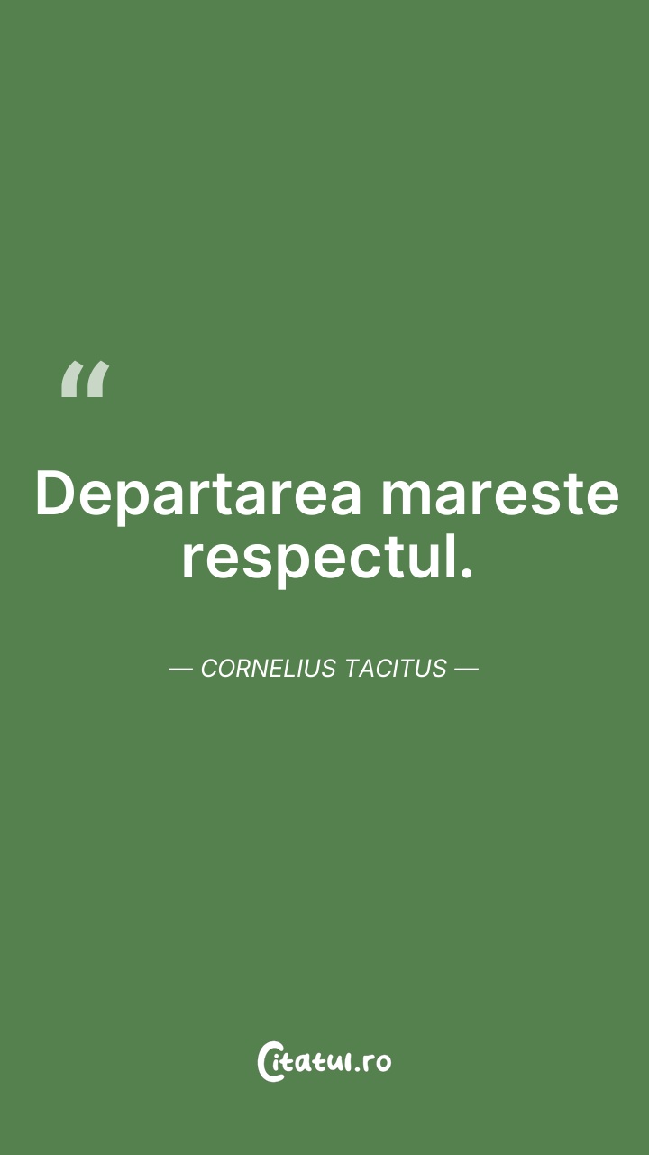 Departarea mareste respectul. Cornelius Tacit ... Citește tot citatul >