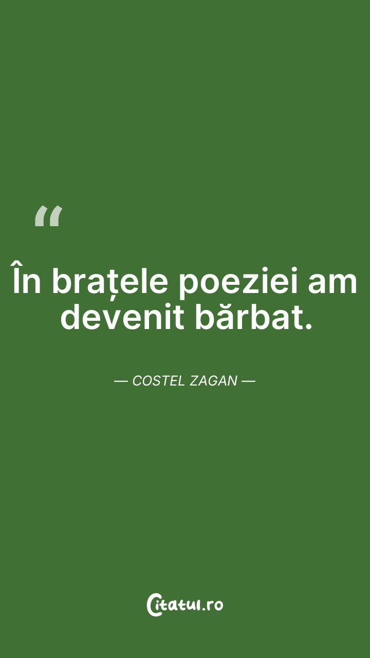 În brațele poeziei am devenit bărbat. Costel ... Citește tot citatul >