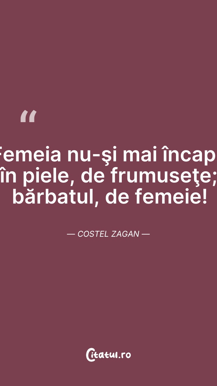 Femeia nu-şi mai încape în piele, de frumuseţ ... Citește tot citatul >