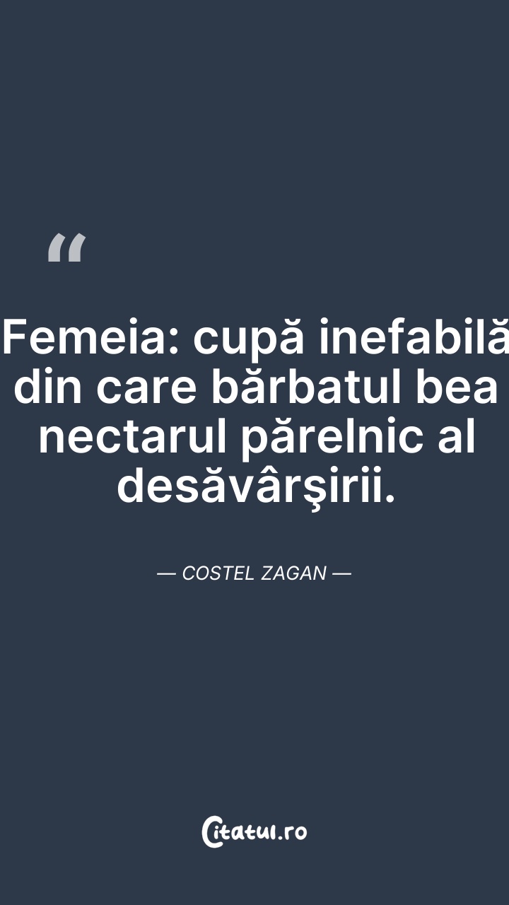 Femeia: cupă inefabilă din care bărbatul bea ... Citește tot citatul >