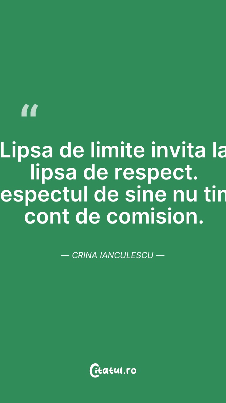 Lipsa de limite invita la lipsa de respect. R ... Citește tot citatul >