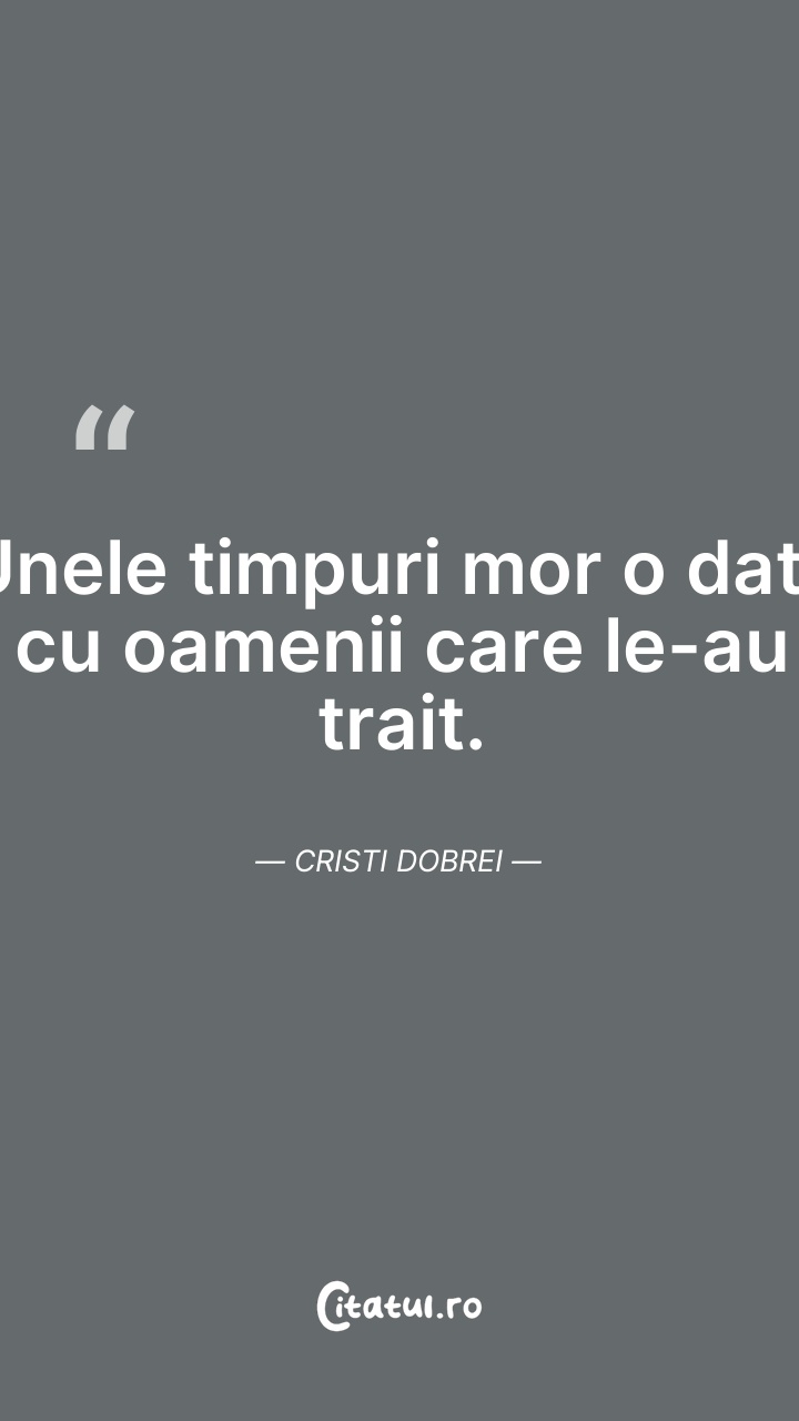 Unele timpuri mor o data cu oamenii care le-a ... Citește tot citatul >