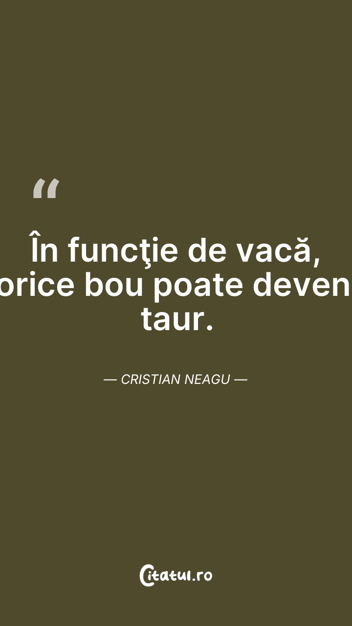În funcţie de vacă, orice bou poate deveni ta ... Citește tot citatul >