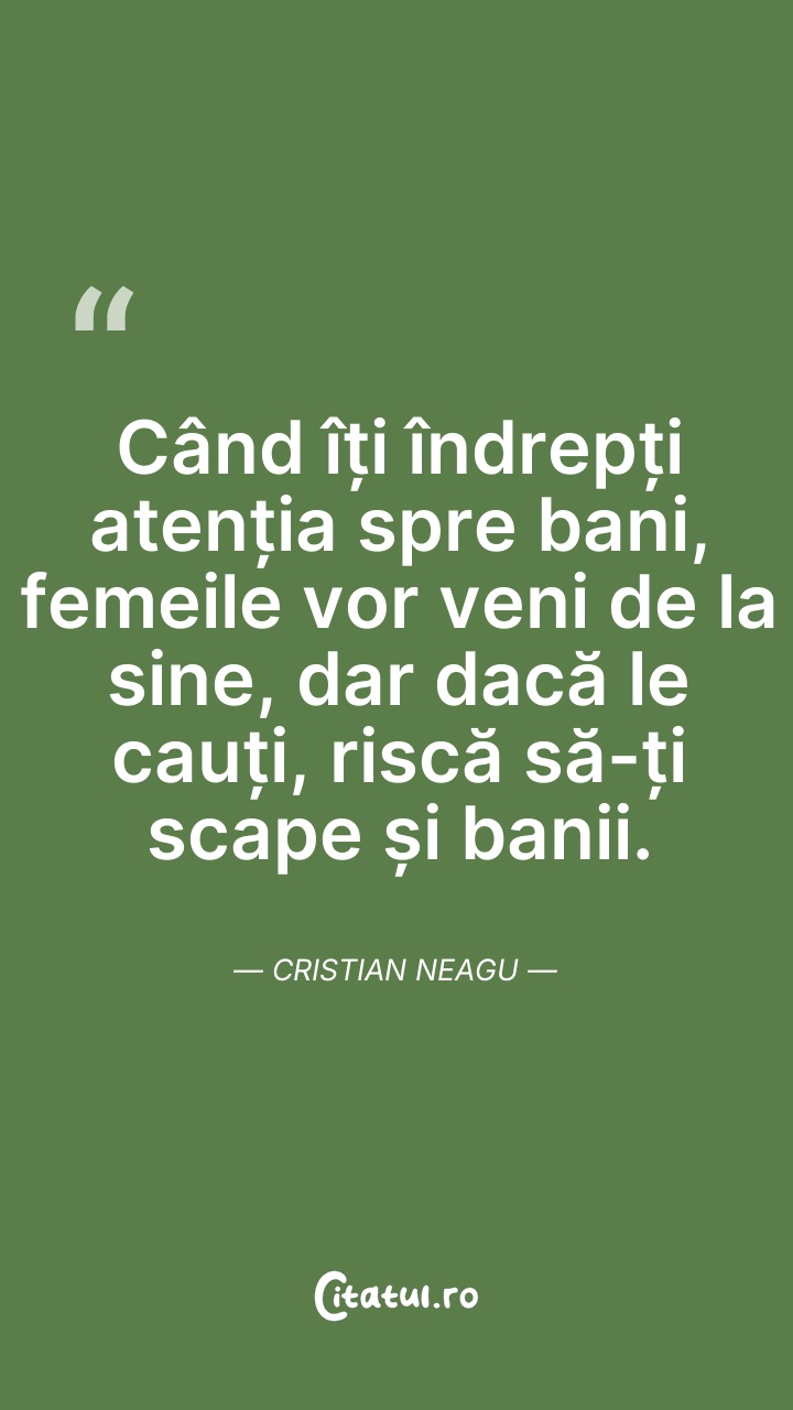 Când îți îndrepți atenția spre bani, femeile ... Citește tot citatul >