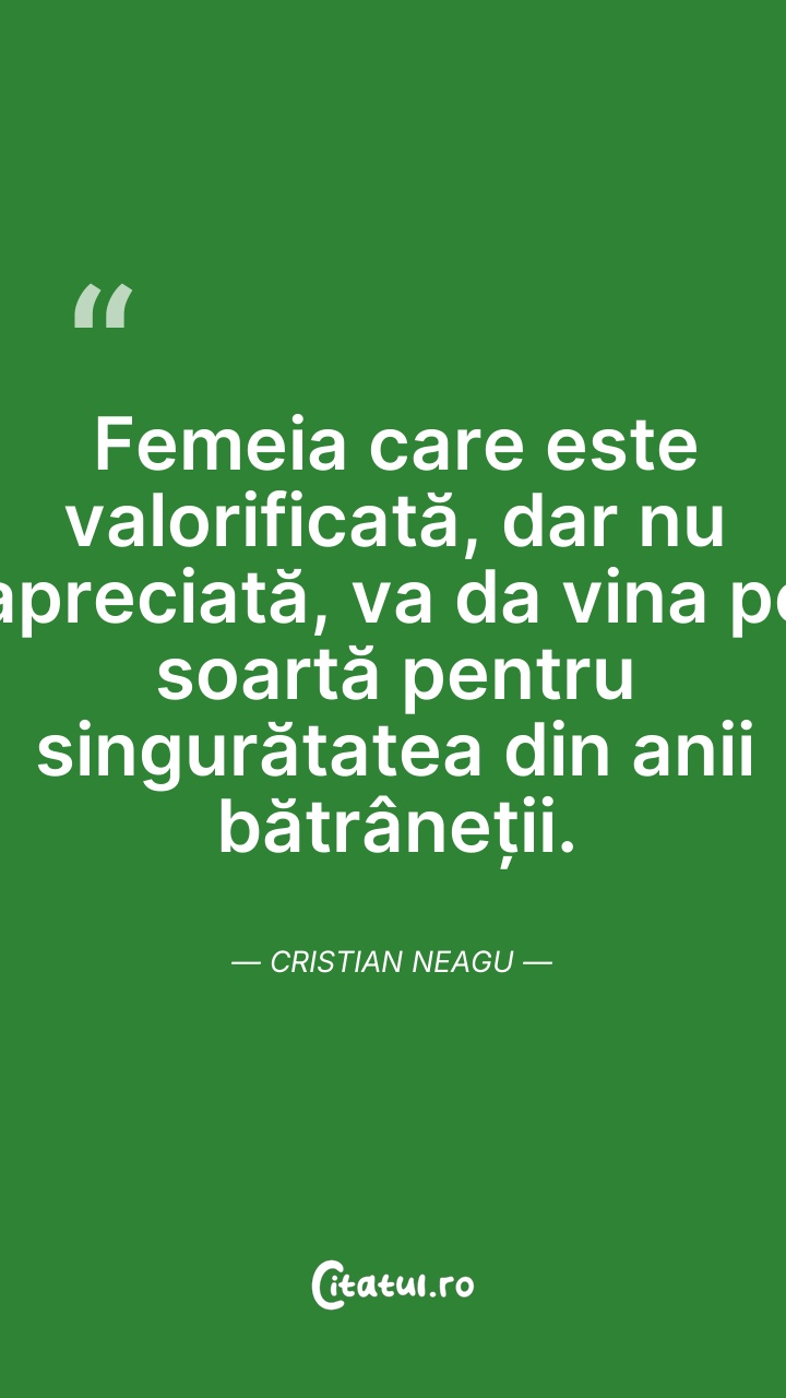Femeia care este valorificată, dar nu aprecia ... Citește tot citatul >