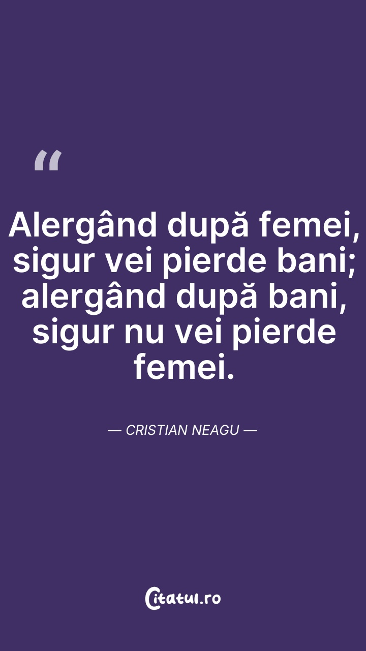 Alergând după femei, sigur vei pierde bani; a ... Citește tot citatul >