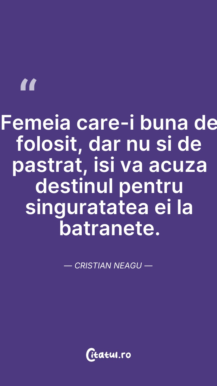 Femeia care-i buna de folosit, dar nu si de p ... Citește tot citatul >