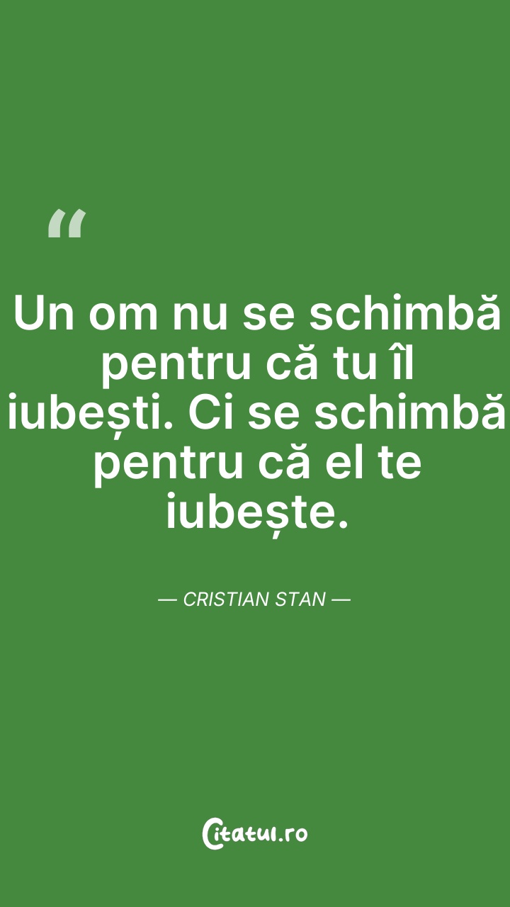 Un om nu se schimbă pentru că tu îl iubești. ... Citește tot citatul >