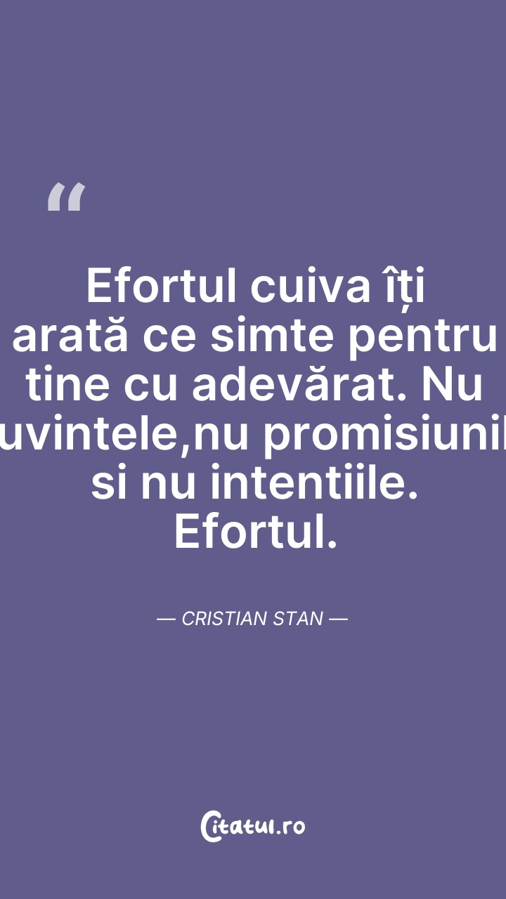 Efortul cuiva îți arată ce simte pentru tine ... Citește tot citatul >