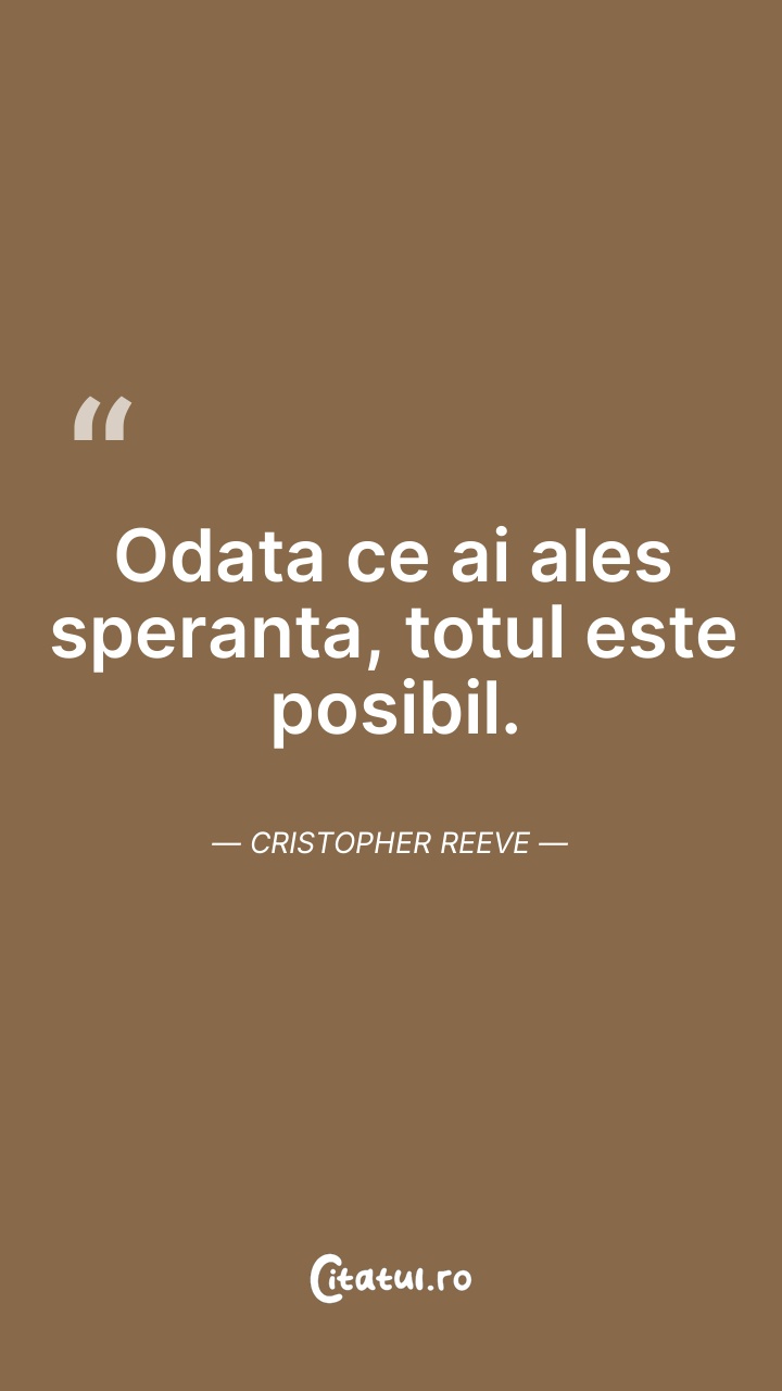 Odata ce ai ales speranta, totul este posibil ... Citește tot citatul >