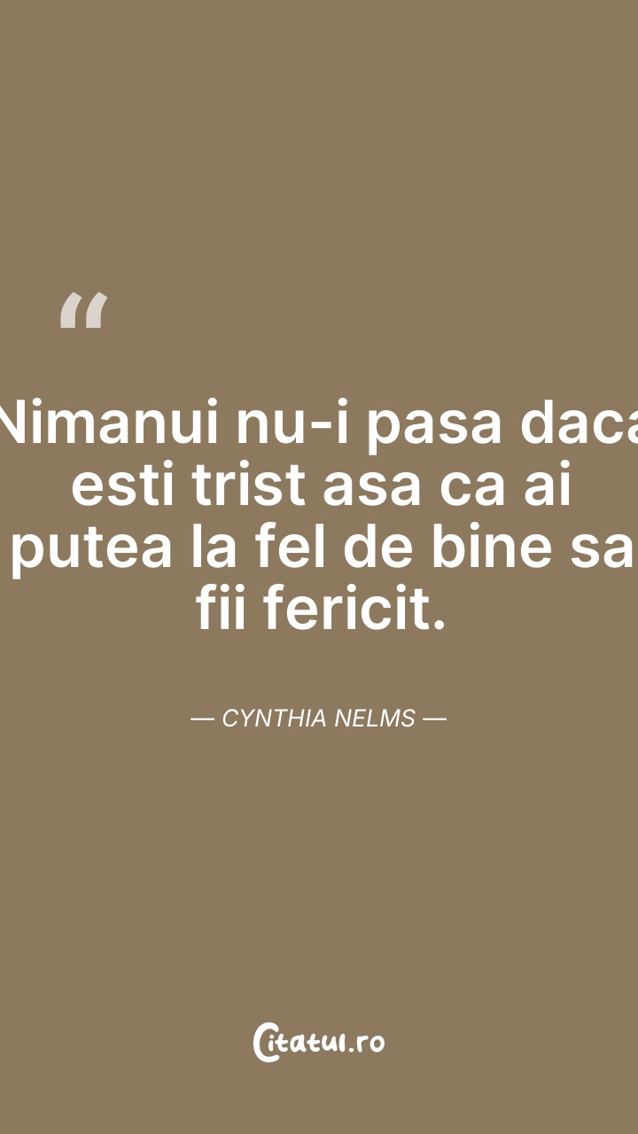 Nimanui nu i pasa daca esti trist, asa ca ai ... Citește tot citatul >