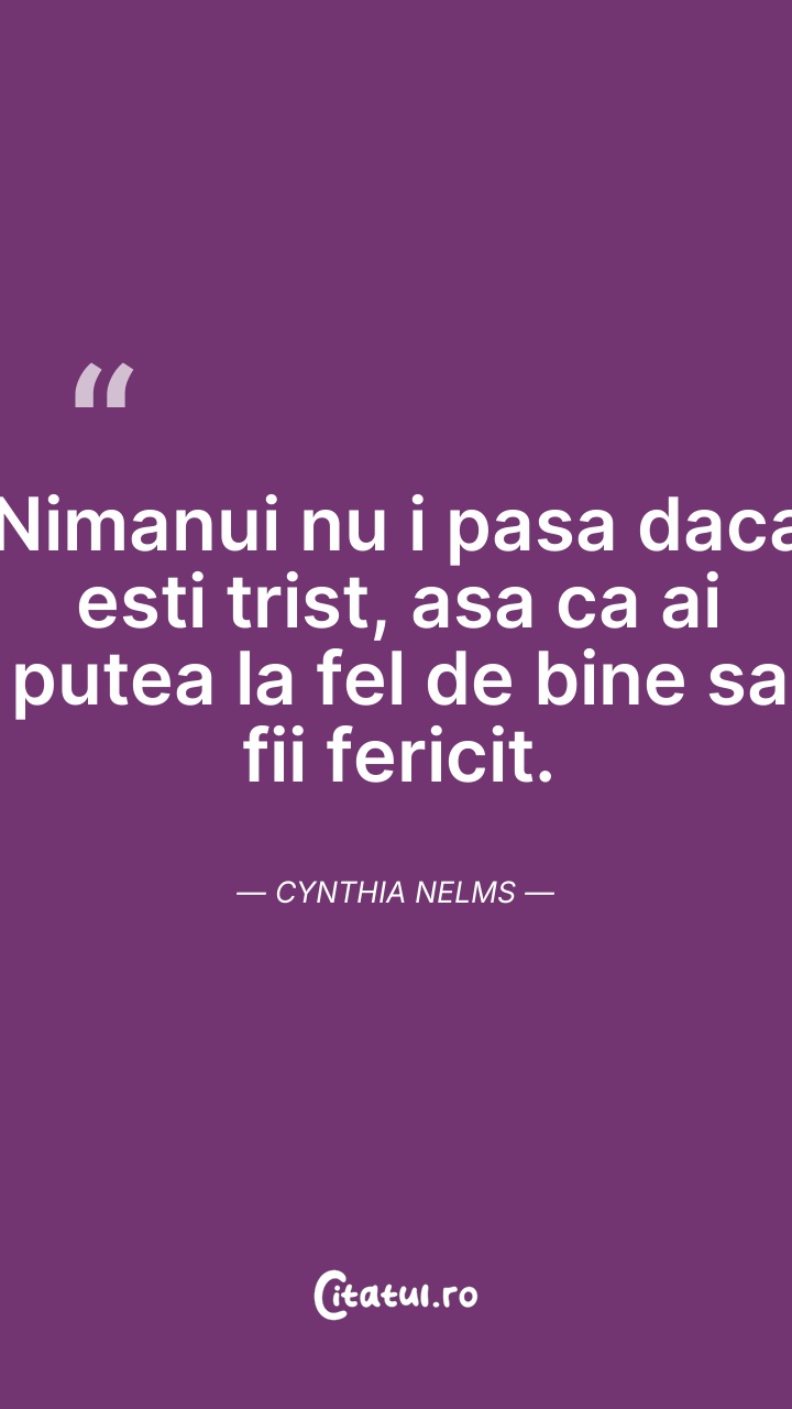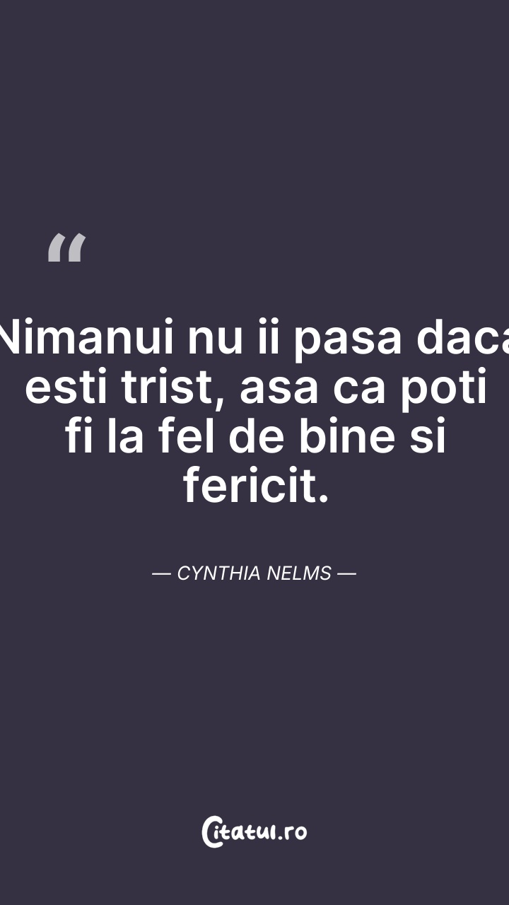Nimanui nu ii pasa daca esti trist, asa ca po ... Citește tot citatul >
