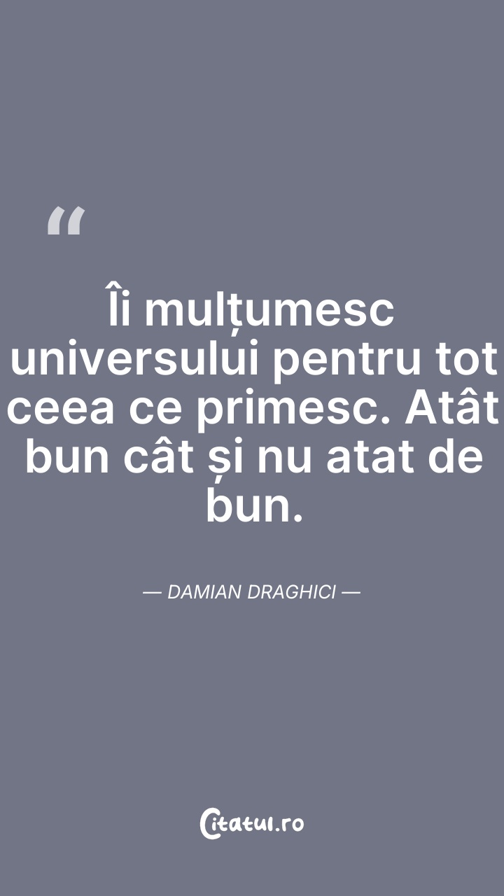 Îi mulțumesc universului pentru tot ceea ce p ... Citește tot citatul >