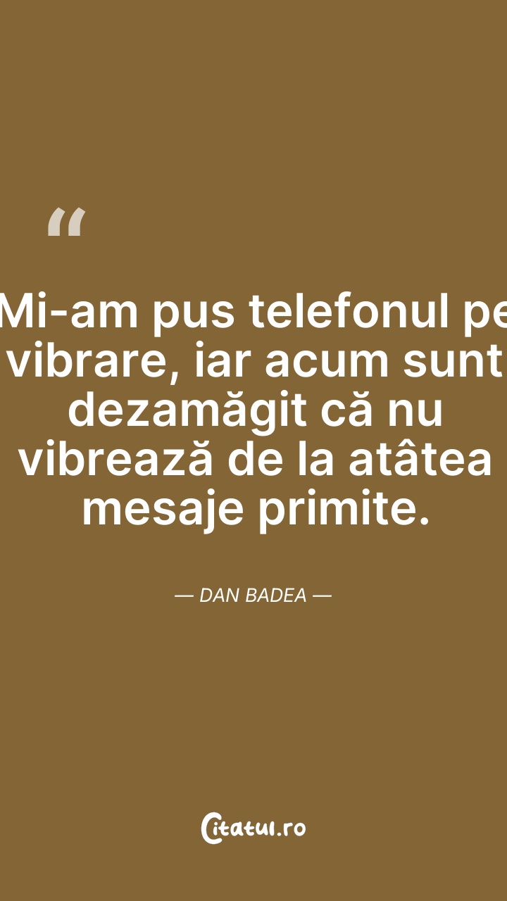 Mi-am pus telefonul pe vibrare, iar acum sunt ... Citește tot citatul >