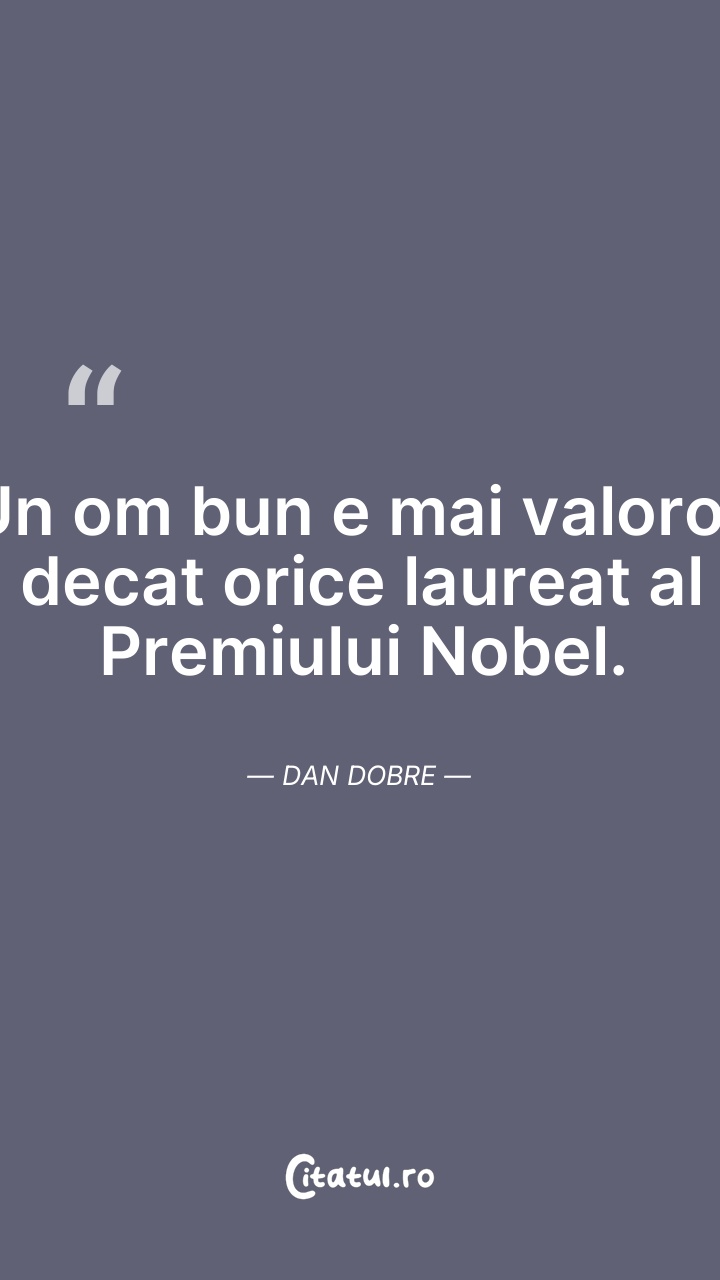 Un om bun e mai valoros decat orice laureat a ... Citește tot citatul >