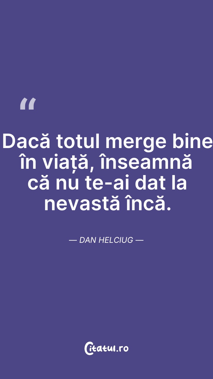Dacă totul merge bine în viață, înseamnă că n ... Citește tot citatul >