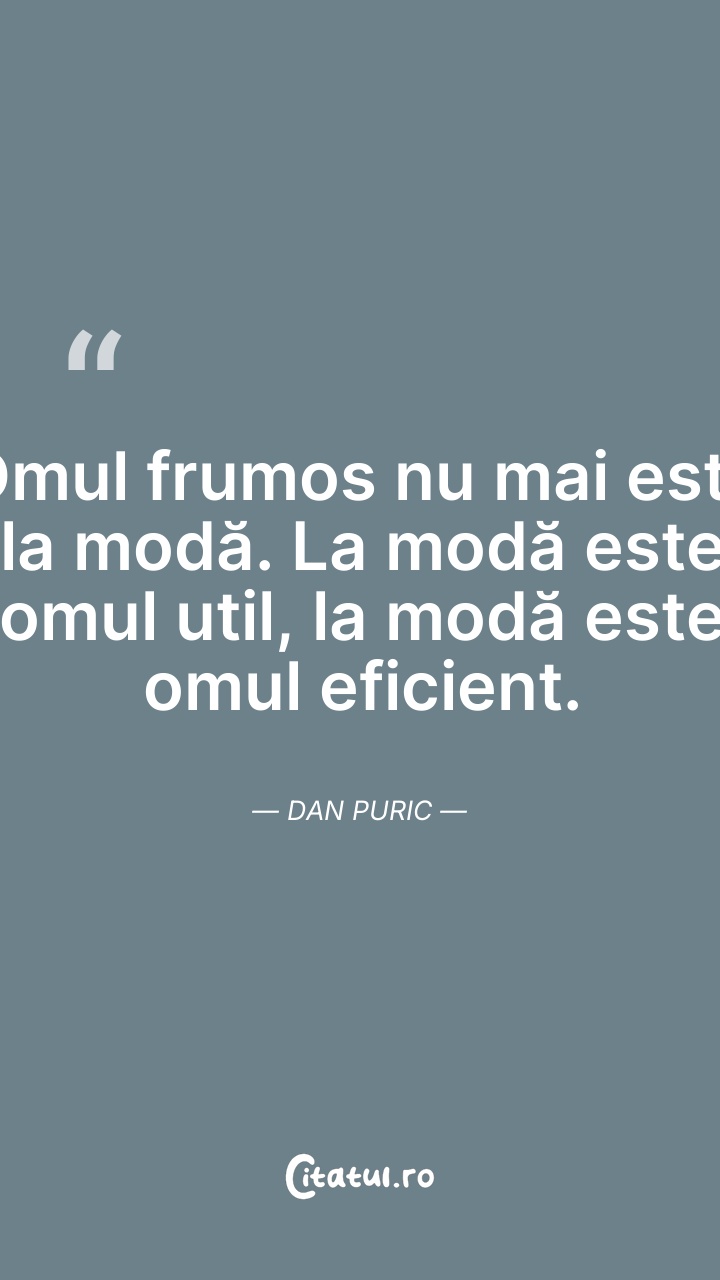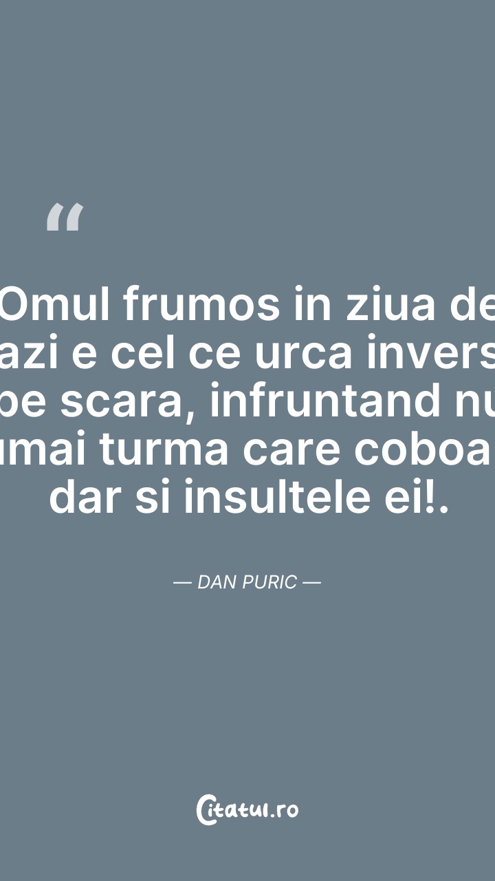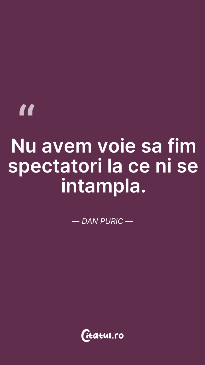 Dan Puric este un actor, eseist, autor și regizor de teatru român și militant politic de extrema dreaptă. Spectacolele sale - Toujours l'amour, Made in Romania, Costumele, Don Quijote - au fost reprezentate în mai multe țări. În film, a jucat rolul principal în coproducția româno-sârbă Broken Youth, iar spectacolele sale de pantomimă au fost transmise de televiziunile: BBC Belfast Royal College, 3SAT Frankfurt și RTL Luxemburg. A mai jucat în filme pentru televiziunea publică din Lausanne, Elveția.