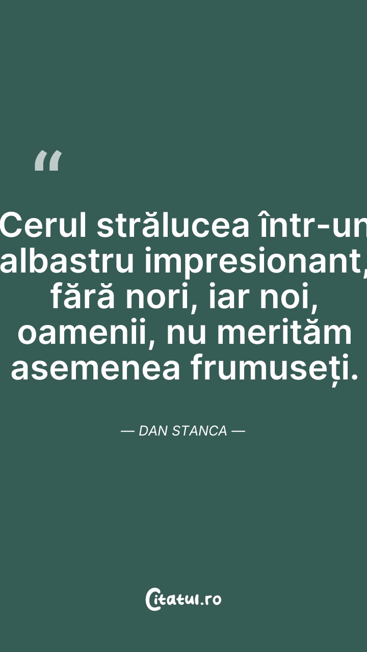 Dan Stanca este un prozator și romancier român contemporan. Debutând în 1992 cu romanul Vântul sau țipătul altuia, Dan Stanca a publicat peste 20 de romane, multe dintre ele premiate, majoritatea lor fiind influențate de gândirea filozofului ezoteric francez René Guénon și a filozofului român Vasile Lovinescu. Dintre romanele sale se pot enumera: Aripile arhanghelului Mihail, 1996; Apocalips amânat, 1997; Morminte străvezii, 1999; Ultimul om, Iași, 1999; Drumul spre piatră, 2002; A doua zi după moarte, 2003; Mut, 2006; Noaptea lui Iuda, 2007; Mare amară, 2014; Ghetsimani '51, 2015, Înainte de întuneric, 2021.