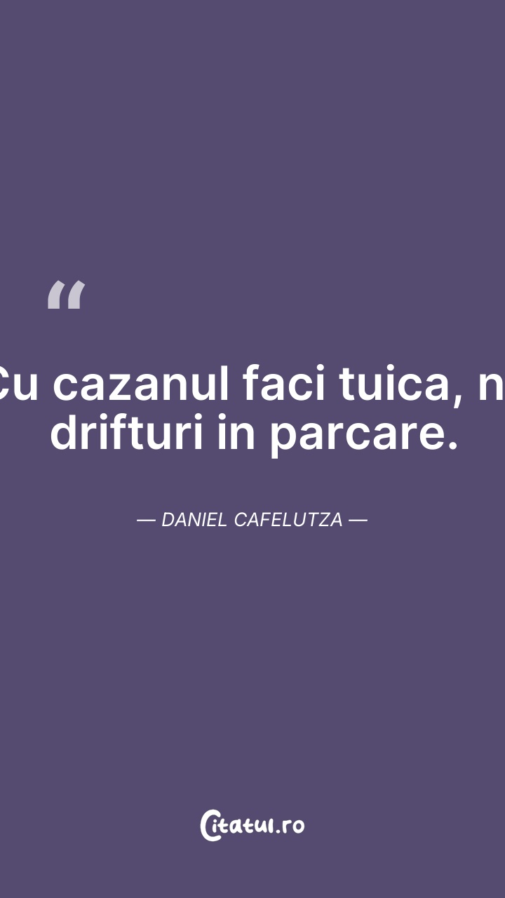 Cu cazanul faci tuica, nu drifturi in parcare ... Citește tot citatul >