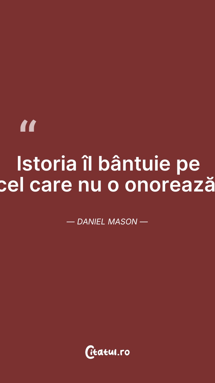Istoria îl bântuie pe cel care nu o onorează. ... Citește tot citatul >