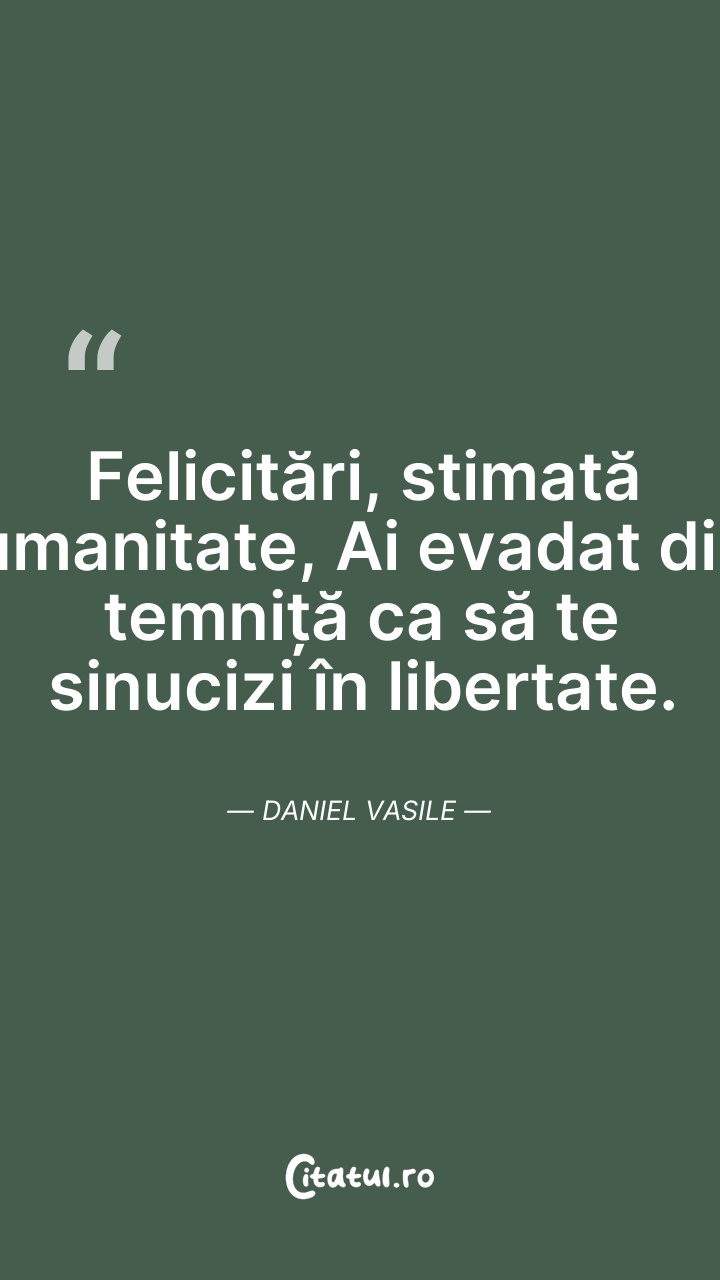 Felicitări, stimată umanitate, Ai evadat din ... Citește tot citatul >