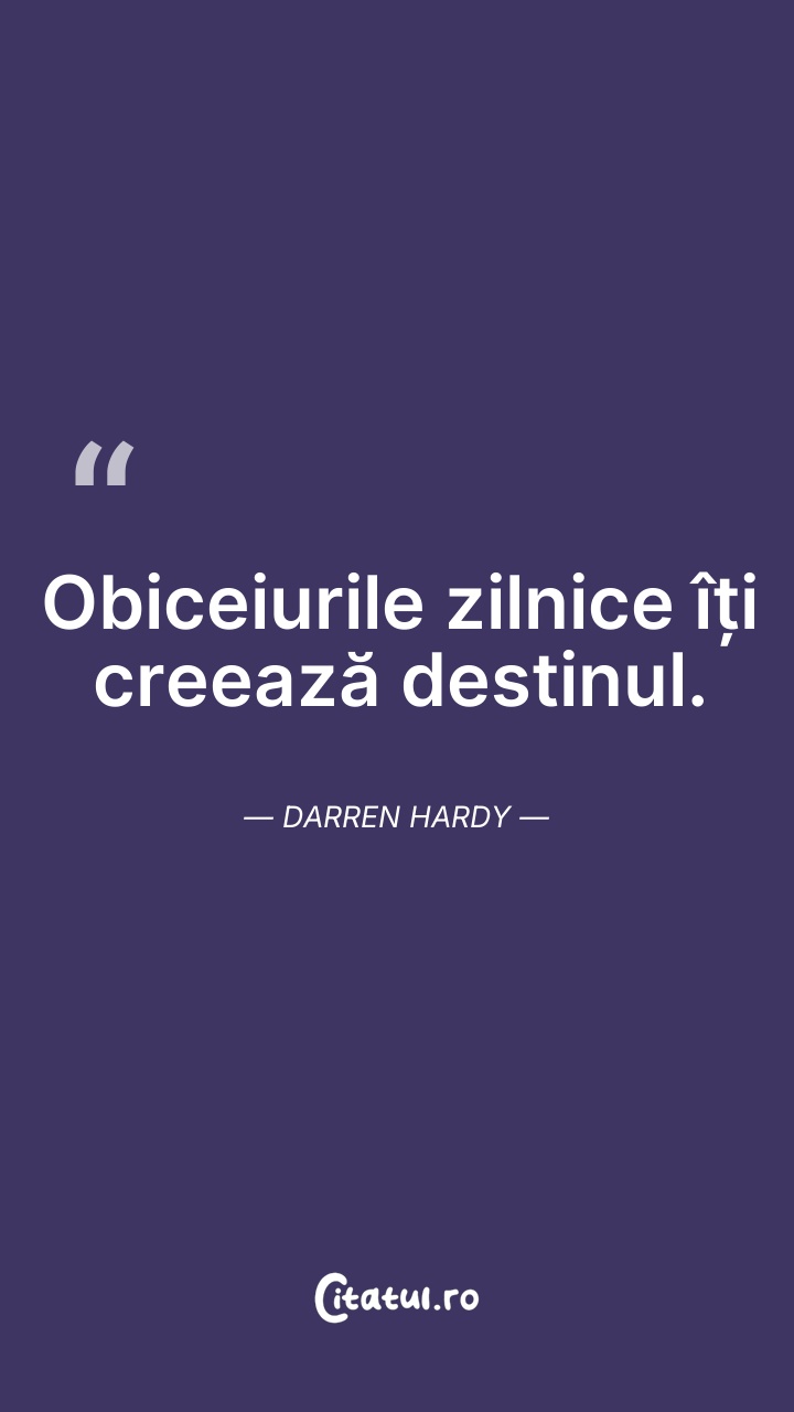 Obiceiurile zilnice îți creează destinul. Dar ... Citește tot citatul >