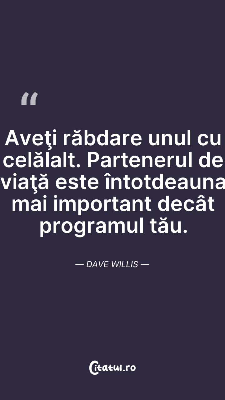 Aveţi răbdare unul cu celălalt. Partenerul de ... Citește tot citatul >