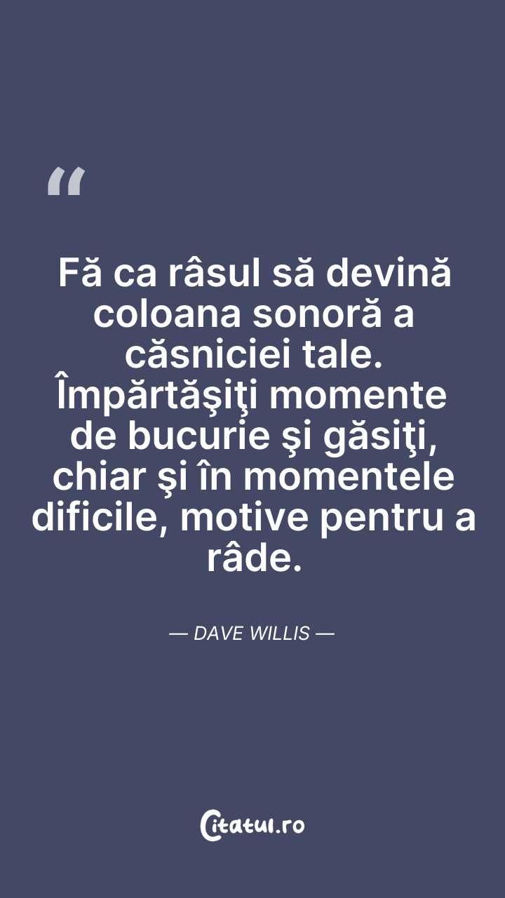 Fă ca râsul să devină coloana sonoră a căsnic ... Citește tot citatul >