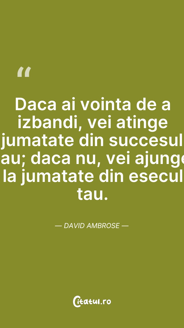Daca ai vointa de a izbandi, vei atinge jumat ... Citește tot citatul >