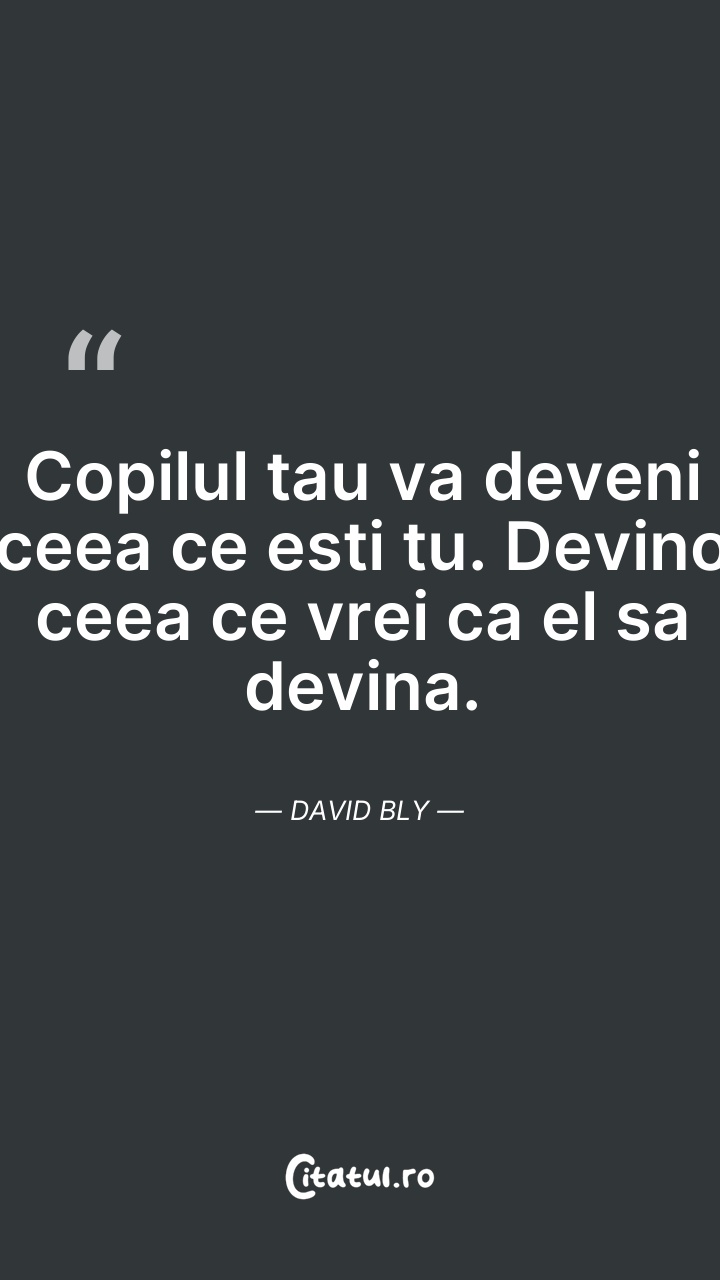 Copilul tau va deveni ceea ce esti tu. Devino ... Citește tot citatul >