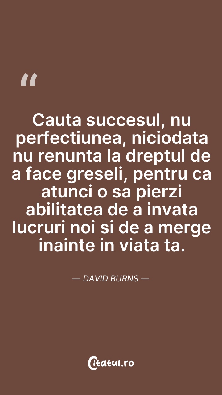 Cauta succesul, nu perfectiunea, niciodata nu ... Citește tot citatul >