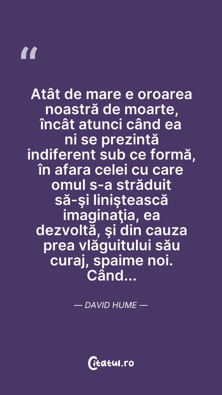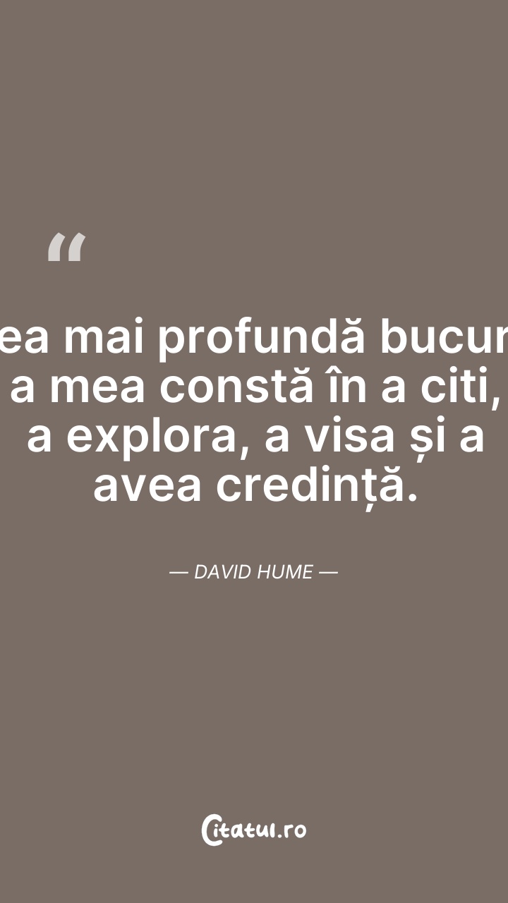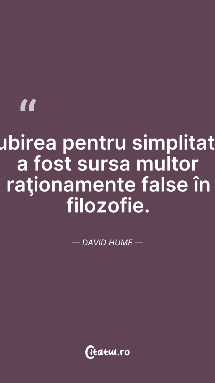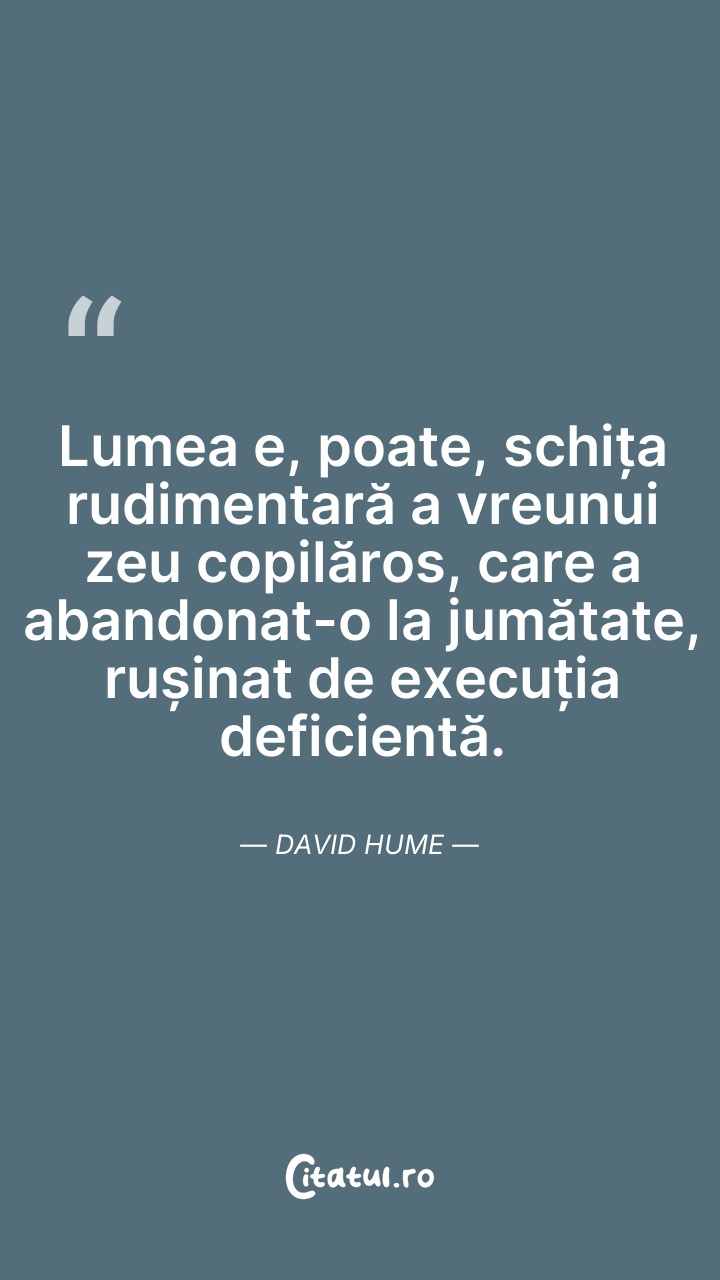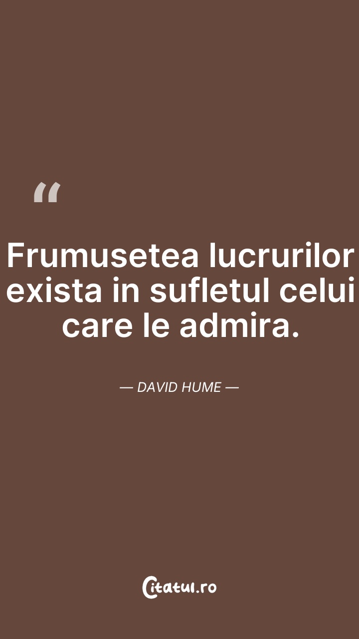 David Hume a fost un filozof, istoric și economist scoțian, un adept al empirismului, unul dintre reprezentanții cei mai de seamă ai Iluminismului scoțian. A fost un critic neobosit al dogmatismului metafizic și religios, devenind celebru pentru modul curajos în care a abordat, de pe poziții sceptice, o serie de subiecte filozofice cum ar fi cauzalitatea, probabilitatea, identitatea personală sau originea virtuții. Contemporan cu Immanuel Kant, a respins și a ridiculizat valoarea ideilor abstracte, a ideilor ce nu vin din realitate, din experiență.