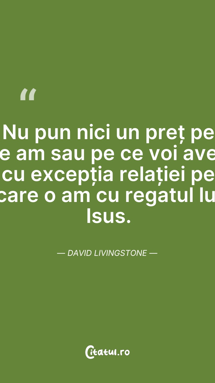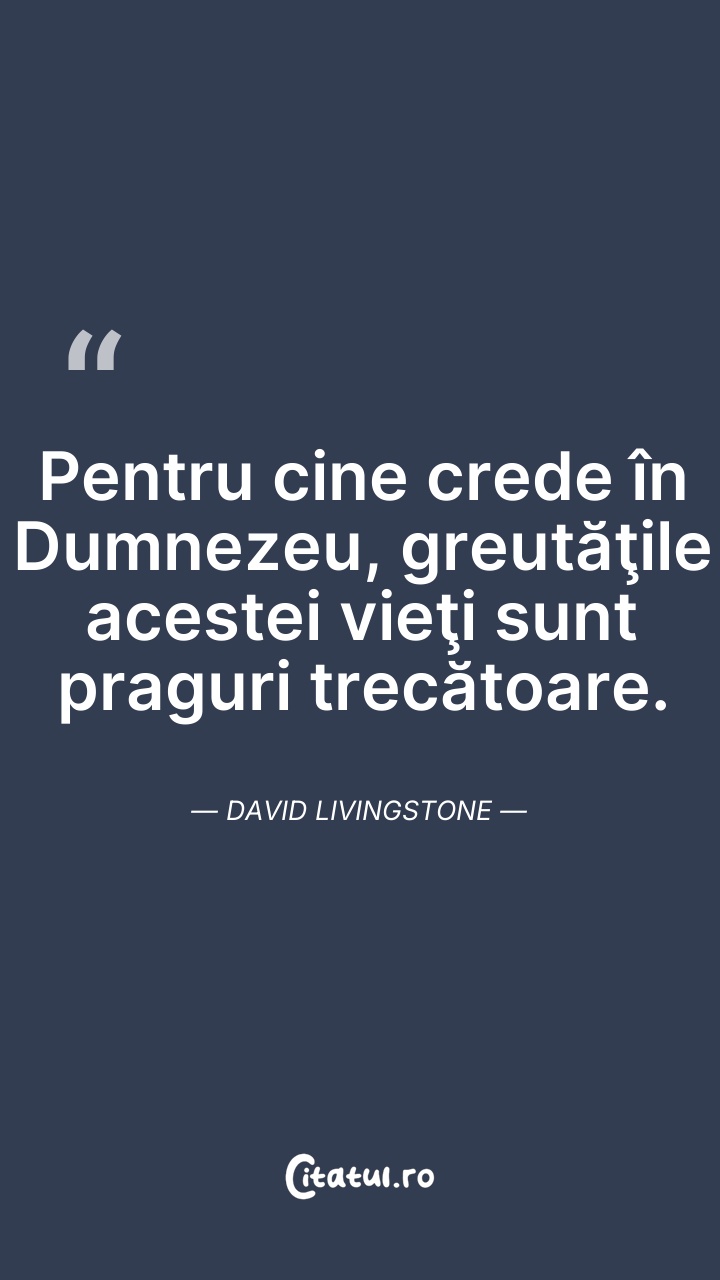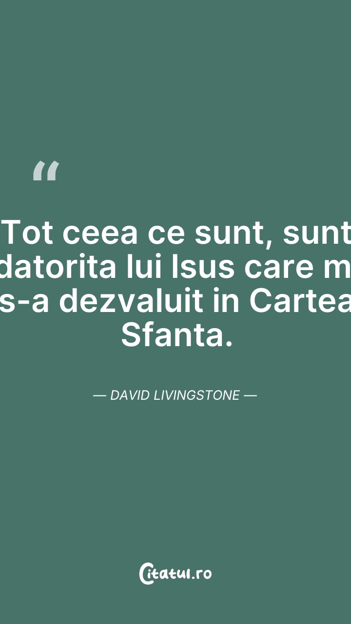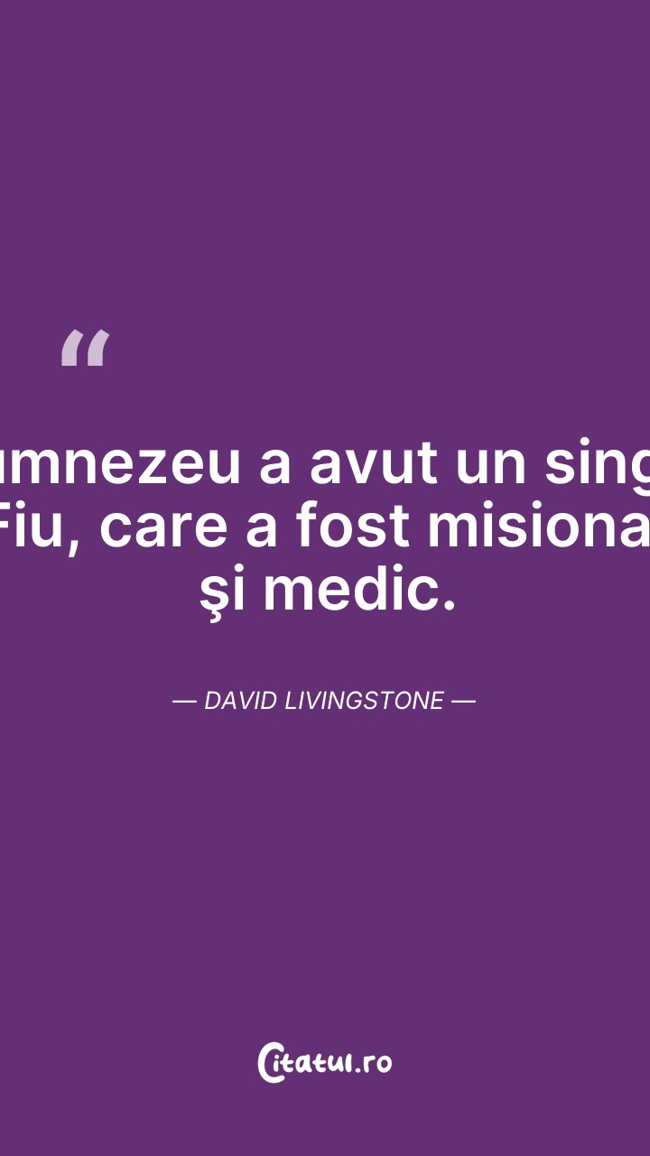 David Livingstone a fost un medic scoțian, misionar protestant și explorator al Africii Centrale și de Est, devenit celebru datorită eforturilor deosebite din timpul vieții și a luptei sale împotriva sclaviei.