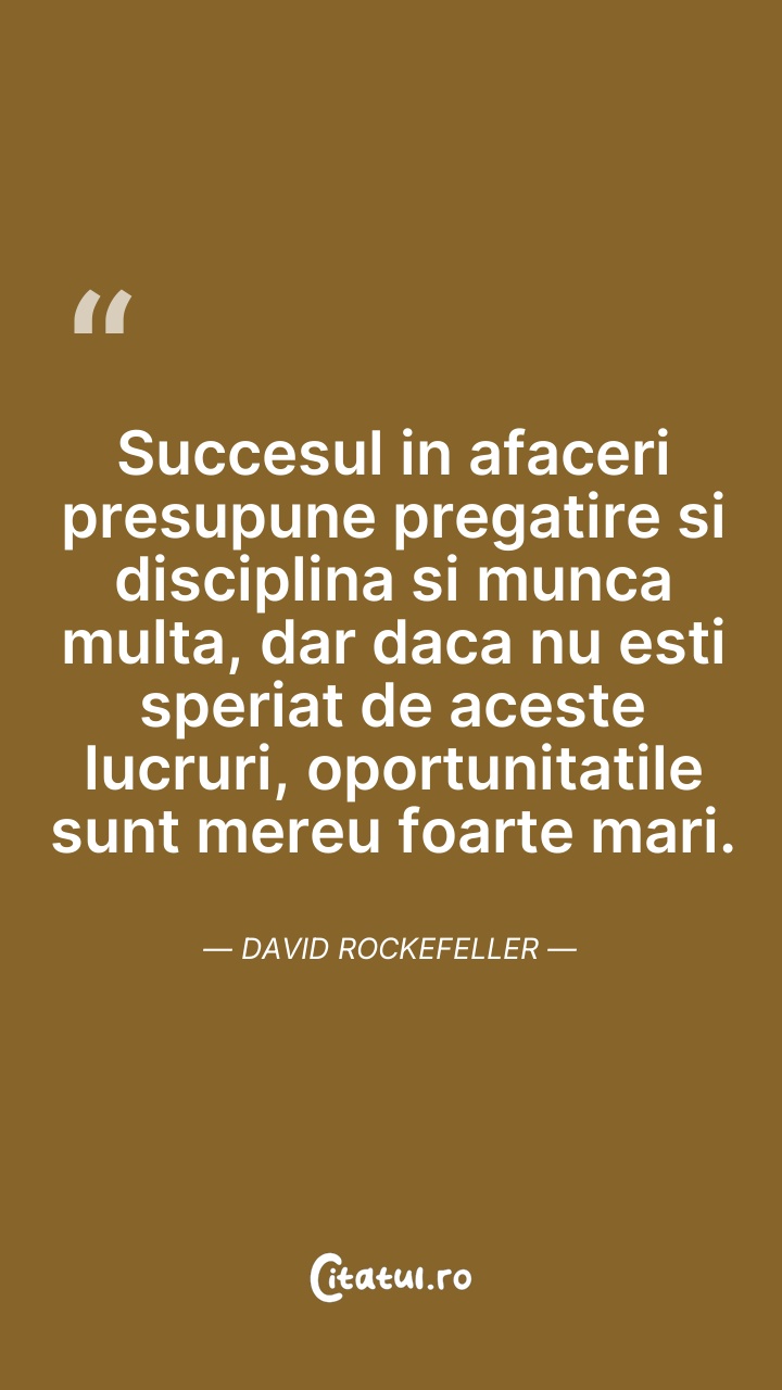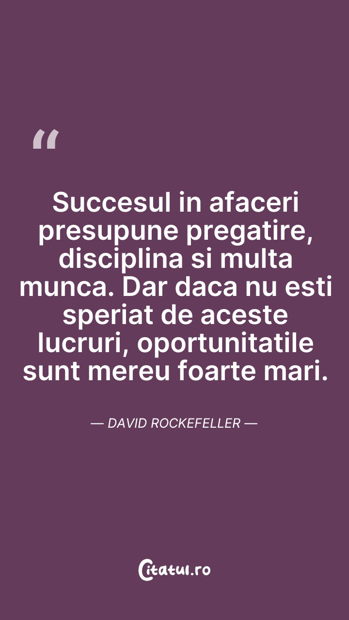 Succesul in afaceri presupune pregatire si di ... Citește tot citatul >